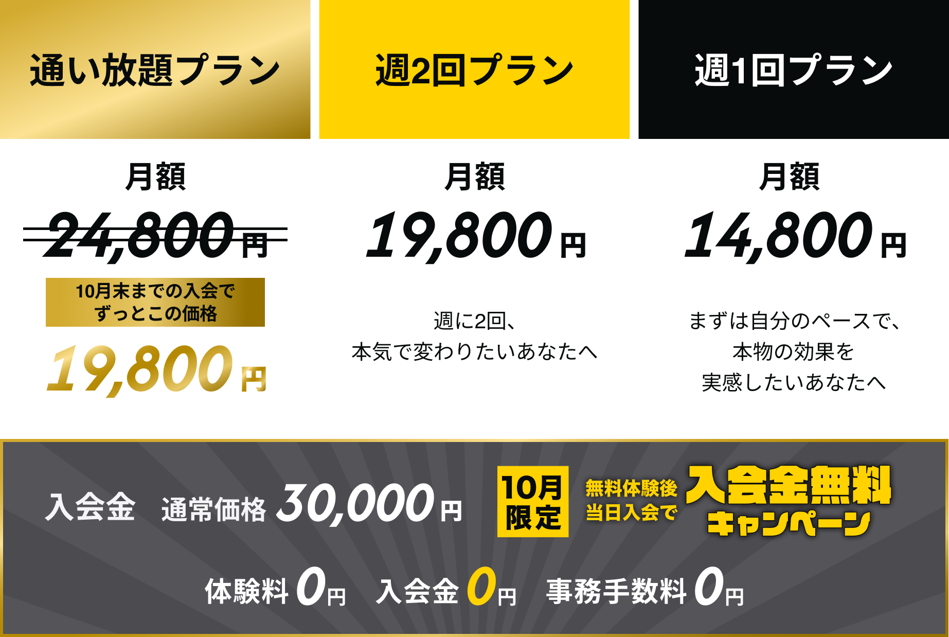 週2回通っても月19,800円。無理なく生活の一部にできる価格設定だから、1年以上続けている方も多数います。